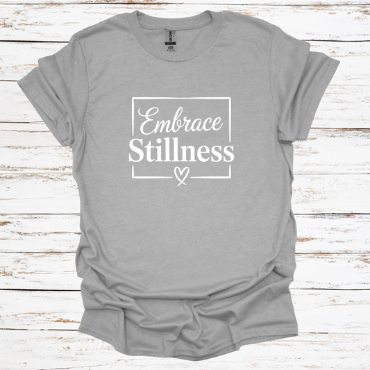The "Embrace Stillness" White Font Tee